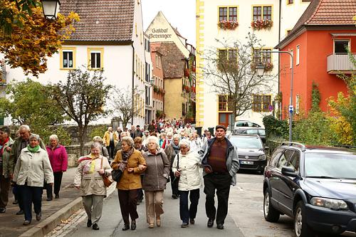 Mit drei großen Reisebussen holte die Gemeinde rund 140 Senioren in den einzelnen Ortsteilen ab, um sich auf den Weg zum diesjährigen Seniorenausflug zu machen. Nachdem alle Senioren in den Bussen saßen wurden kleine Essenspakete verteilt. Mit Brezel, Brötchen, Wurst, Käse, Obst, Kuchen und einem Getränk konnte die Fahrt in Richtung Würzburg beginnen.