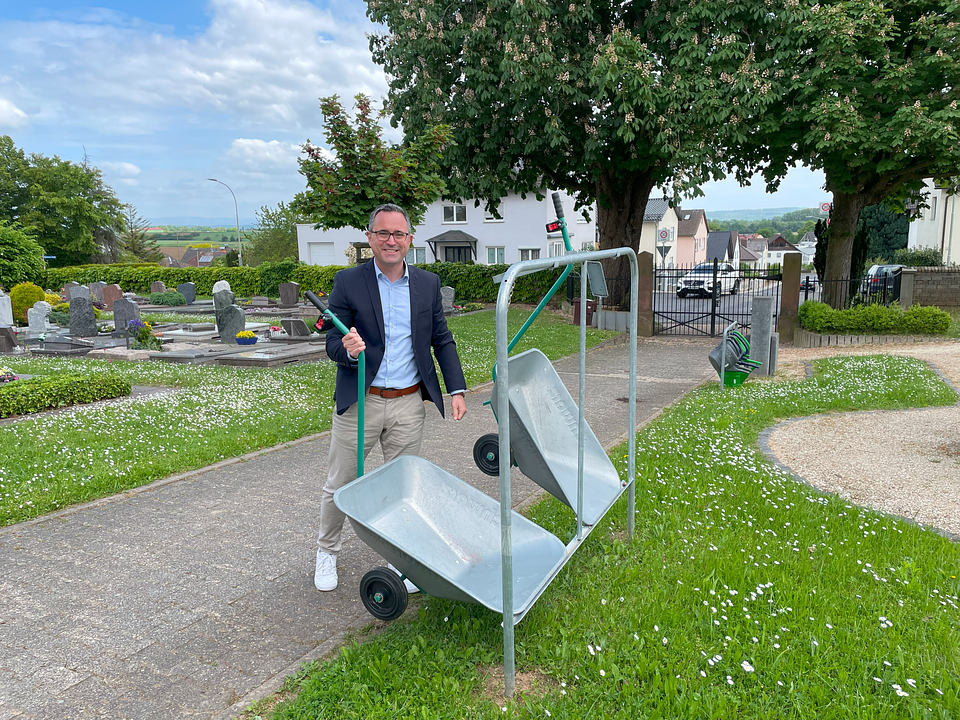 Ob Blumen, Erde oder ausgerupftes Unkraut von den Gräbern. Wer sein Grab auf einem Friedhof der Gemeinde pflegt soll es künftig einfacher haben. Schon vor einigen Wochen wurden auf dem Friedhof in Wölfersheim Schubkarren installiert. Auf den anderen Friedhöfen in den Ortsteilen sollen sie in den nächsten Monaten folgen.
