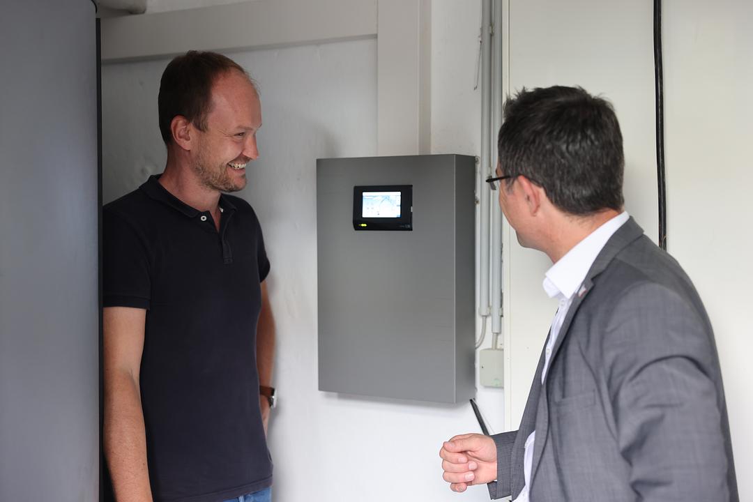 Die Kita Storchennest im Ortsteil Berstadt konnte 2018 in Betrieb genommen werden. In den vergangenen beiden Jahren fanden umfassende Arbeiten statt um die Betreuungssituation, aber auch die energetische Bilanz des Gebäudes zu verbessern. Vor einigen Wochen konnte die neue Heizungsanlage installiert werden. Bürgermeister Eike See und der für die technische Gebäudeausstattung zuständige Klimaschutzmanager Markus Michel verschafften sich einen Eindruck vor Ort.