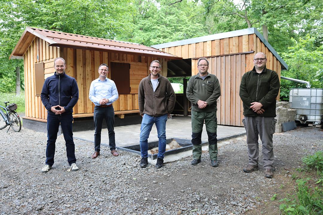 Seit vielen Jahren befindet sich im Södeler Wald eine kleine Hütte, die in die Jahre gekommen war. Die Jagdpächter Tim Grießhammer und Herbert Katzer und Jäger Andreas Merger haben die Hütte erneuert. Bürgermeister Eike See und der im Rathaus zuständige Klimaschutzmanager Markus Michel haben sich gemeinsam vor Ort überzeugt.