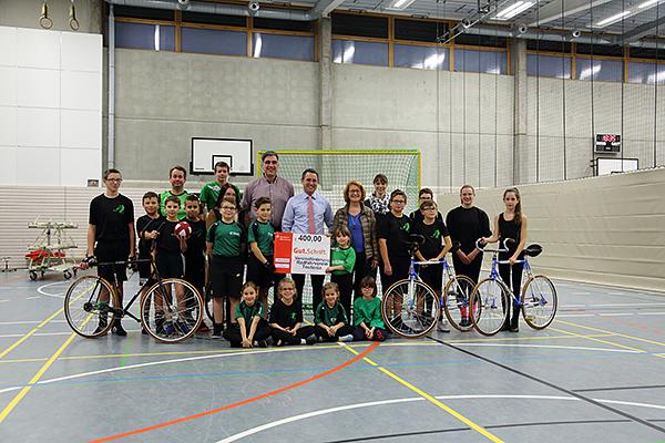 Ob in sportlichen, kulturellen, sozialen oder anderen Bereichen bieten Vereine attraktive Freizeitangebote und engagieren sich für das Gemeinwohl. Die Ehrenamtlichen nehmen damit eine wichtige Aufgabe in unserer Gesellschaft wahr. Damit dies auch in Zukunft so bleibt, ist eine gute Jugendarbeit von existenzieller Bedeutung. Die Gemeinde unterstützt daher jährlich Vereine, die sich durch besondere Angebote hervortun, und ehrt sie im Rahmen der Wölfersheimer Vereinsförderung. So auch den Radfahrverein Teutonia, dem die Vorsitzende des Ausschusses für Sport, Kultur, Jugend und Soziales, Magda Gerlach, unlängst die Förderung gemeinsam mit Bürgermeister Eike See und der Ersten Beigeordneten Carmen Körschner im Rahmen eines Trainings in der Singberghalle übergab.