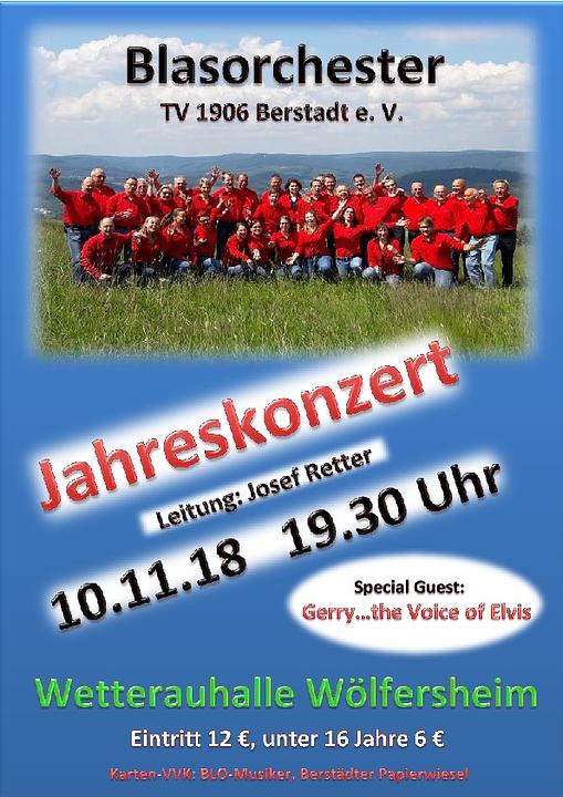 Die Proben des Blasorchesters des Turnvereins 1906 Berstadt e.V. für das diesjährige Jahreskonzert am 10. November 2018 gehen in die heiße Phase. Die monatelange Arbeit, angefangen mit Satz- und Registerproben, bis hin zu Gesamtproben mit dem Elvis-Interpreten Gerald „Gerry“ Dinis, nähert sich mit der Generalprobe am Freitag in der Wölfersheimer Wetterauhalle dem Ende.