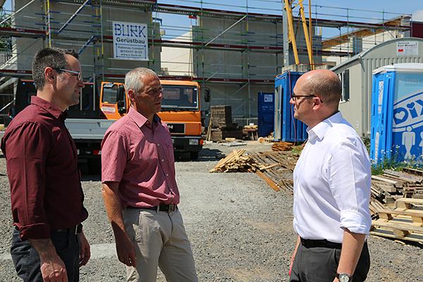 Inzwischen besuchen rund 1.400 Schüler die Singbergschule. Durch die Einführung der Oberstufe und das immer attraktivere Bildungsangebot ist die Schülerzahl in den vergangenen Jahren immer weiter gestiegen. Ein Trend, der sich vermutlich fortsetzen wird. Um die zusätzlichen Schüler aufzunehmen, investieren die Gemeinde Wölfersheim und der Wetteraukreis gemeinsam in neue Räumlichkeiten. Bürgermeister Rouven Kötter und Schulkoordinator Eike See statteten Schulleiter Olaf Bogusch einen Besuch ab, um sich über den Fortschritt der Arbeiten zu informieren.