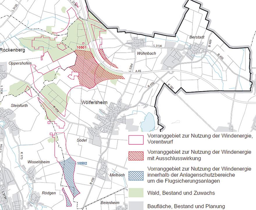 Nachdem der erste Entwurf des „Teilplanes Erneuerbare Energien“ durch den Regionalverband FrankfurtRheinMain veröffentlicht wurde, war das Entsetzen im Wölfersheimer Rathaus und bei der Bevölkerung groß. Der Plan sah ein 870 Hektar (8.700.000 m²) großes Windvorranggebiet um Wölfersheim herum vor. „Wäre dieses Gebiet tatsächlich realisiert und auch bebaut worden, wäre unsere Gemeinde nicht mehr die gleiche gewesen.“ ist sich Bürgermeister Rouven Kötter sicher. „Dies hätte das Landschaftsbild um unsere Gemeinde herum erheblich verändert und auch zu deutlichen Einbußen in der Wohnqualität geführt.“ Viele Bürger und auch die Gemeinde selbst haben daraufhin im Rahmen der ersten Offenlage dieses Planes ihre Einwände formuliert und gegen das Gebiet protestiert. Dies war ganz offensichtlich erfolgreich, denn im nun vorliegenden überarbeiteten Plan ist das ursprüngliche Gebiet deutlich verkleinert worden. Die Frankfurter Allgemeine Zeitung schrieb dazu am 3. Juni: „Der Bürgerprotest hat etwa dazu geführt, dass die Sicht auf die Burg Münzenberg in der Wetterau, wie man sie auch von der Autobahn A5 hat, erhalten bleibt. (…) Auch die Tatsache, dass das benachbarte Wölfersheim und der Bad Nauheimer Stadtteil Steinfurth praktisch von Windrädern umzingelt gewesen wären, hat die Planer bewogen, das einst 870 Hektar große Vorranggebiete in der Wetterau um 600 Hektar zu verkleinern.“